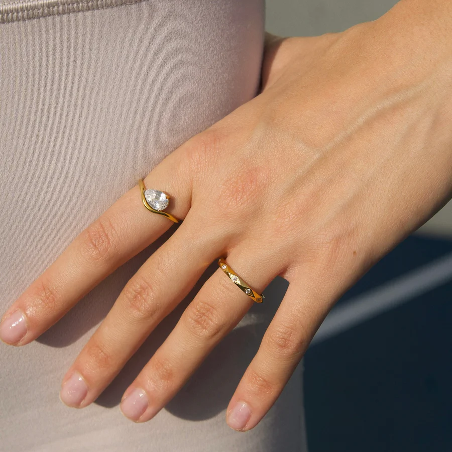 The Celine Dainty Ring is a beautiful piece that gives your fingers a soft look. When it comes to looking for a ring that can be worn at the beach, you must look for a thin one. That's why this one is perfect for stacking or wearing alone.